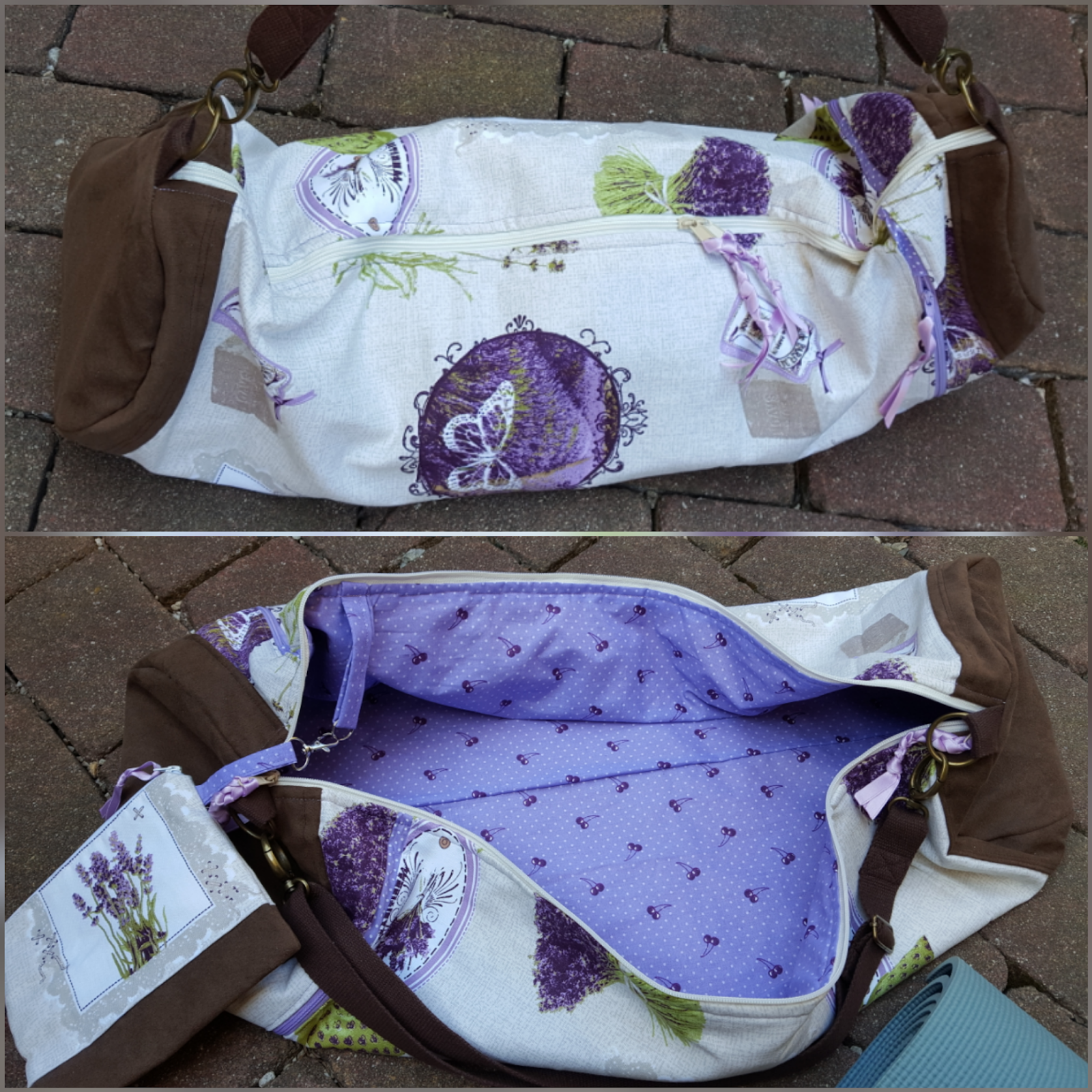 Mit einer riesen Freude hab ich diese wunderschöne, geräumige und praktische Yogatasche für eine besonders liebe Freundin und großartige Yoga-Lehrerin genäht! Den Stoff hat sie sich selbst ausgesucht, die Akzente in lila (ihre Lieblingsfarbe) waren ausdrücklich gewünscht. Die Tasche ist absichtlich geräumig gehalten, so dass neben der Yogamatte noch Trinkflasche, Handtuch und vieles mehr Platz haben. Außen gibt’s zwei Reißverschlußfächer (natürlich mit lila Futterstoff) und innen ein abnehmbares kleines Mini-Täschchen. Der Tragegurt ist verstellbar, der Boden verstärkt – und die Begeisterung meiner Freundin unbezahlbar 🙂