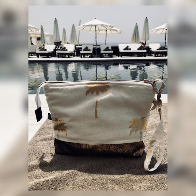 Zu spät für den Geburtstag aber immerhin noch rechtzeitig zum Urlaub ist dieses sommerlich-frische Kosmetiktascherl für eine liebe Freundin fertig geworden. Mit 30 x 20 x 8 cm hat es die ideale Größe für Sonnencreme und andere Strandbegleiter. Innen Steck- und Zipperfach. Das Kunstleder und der metallic Palmenstoff sind von lieblingsstuecke.at, Futterstoff und metallisierter Zipper von Snaply.