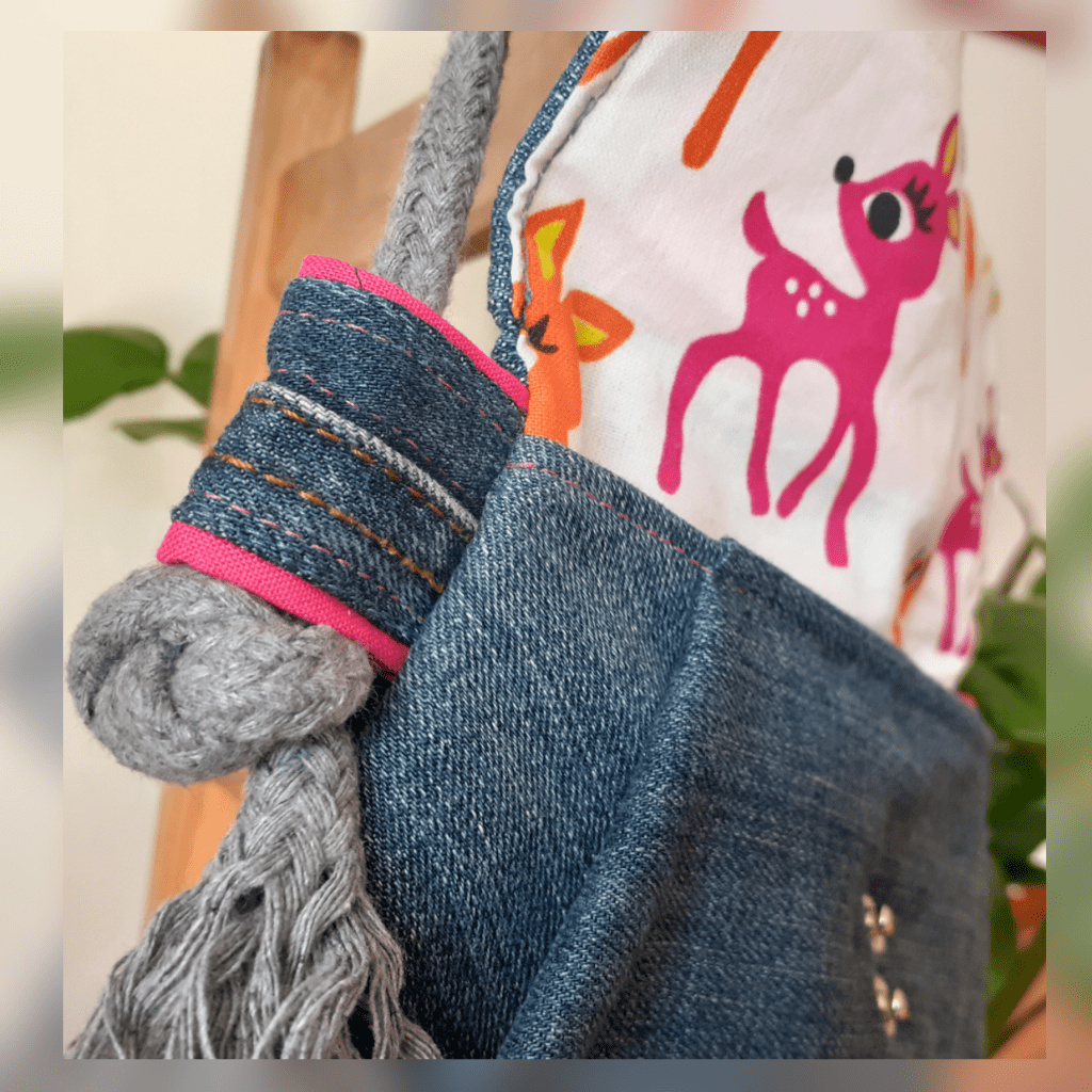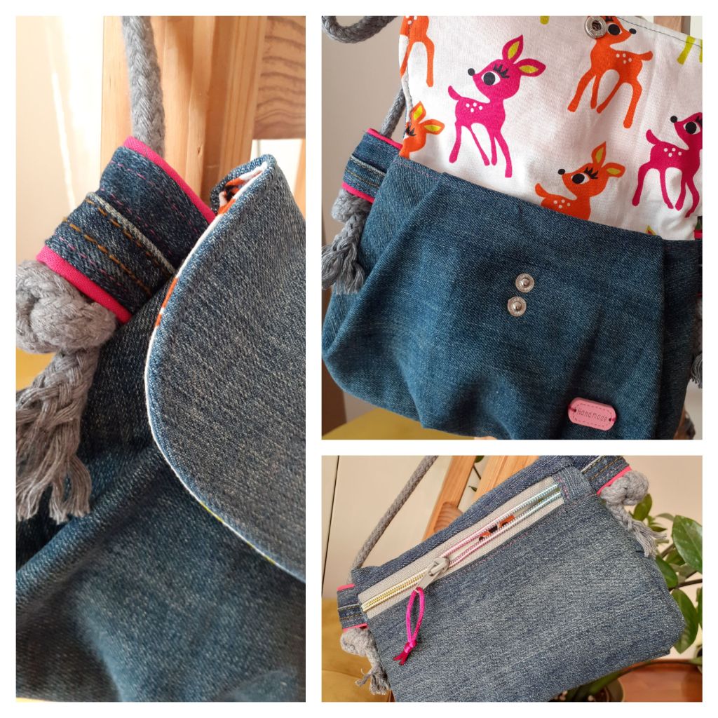 Jetzt wirds stylish im Kindergarten! Aus Jeans und in den Lieblingsfarben blau und pink hab ich diese süße kleine Tasche (20 x 15cm) für eine junge Dame genäht – sie hat sich so sehr ihr erste eigene Handtasche gewünscht. Da helfe ich natürlich gerne 🥰 Sie kann ihre Tasche quer oder lässig über die Schulter tragen (Kordel ist verstellbar) oder auch als Clutch. Der Regenbogenzipper bringt einen Hauch Glamour und der Bambi-Futterstoff ist einfach nur wow!