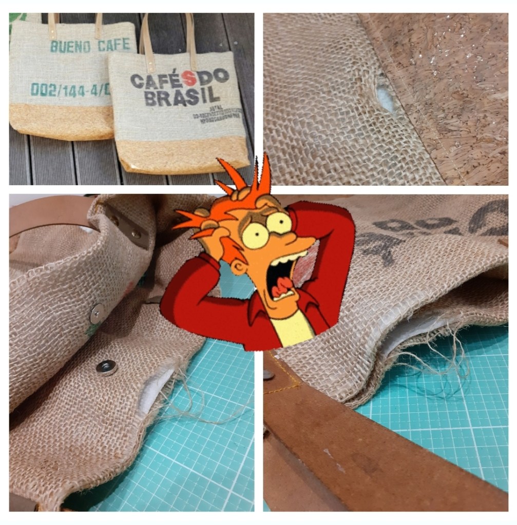Vor drei Jahren hab ich einer Freundin eine meiner Kaffeesacktaschen aus der ersten Kollektion geschenkt – und sie hatte sie seitdem fast täglich in Verwendung. Das freut mich natürlich total! Leider hat die Tasche an einigen Stellen – mehr oder weniger stark – gelitten. Ich hätte ihr ja sofort eine neue Tasche genäht (inzwischen kenn ich das Material besser und weiß wo man aufpassen/verstärken muss, welche Schnitte sich eignen etc). Aber sie wollte keine neue, sondern die Rettung ihrer Lieblingstasche. Okaaay.. ich liebe Näh-Herausforderungen 😅💪