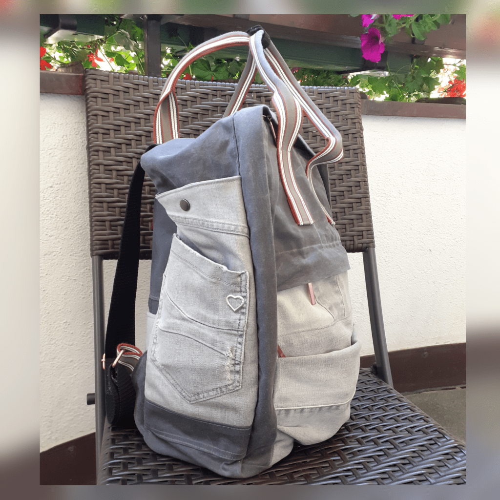 Das stand schon länger auf meiner Näh-Bucket List: Die Kombination meiner beiden Lieblingsmaterialien (Jeans und Foxoilskin) mit meinem Lieblingsschnitt 😍 Entstanden ist ein einzigartiger Rucksack mit vielen Fächern und einem Innenleben in genau meinen Farben! Die Träger sind etwas länger, damit ich ihn auch als Schultertasche verwenden kann. Erste (schwerwiegende) Einsätze hat mein neues Schätzchen schon souverän gemeistert. Endlich kann ich auch meine alte (ähm zu enge) Lieblingsjeans wieder tragen 🤣 Summasummarum: I am pleased 🥳🤩