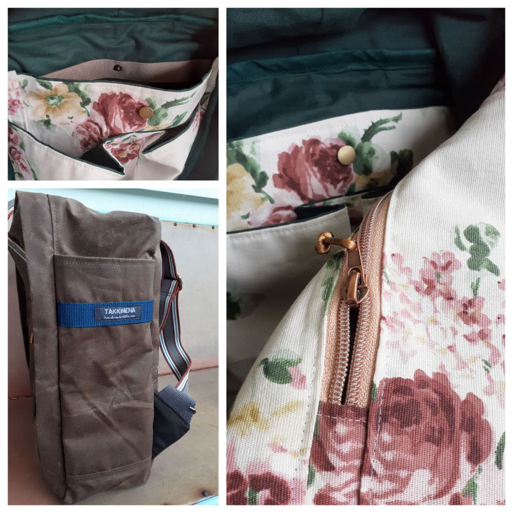 Nach den langen Ferien wieder in die Schule bzw. in die Arbeit zu gehen ist mit diesem chicen Rucksack gleich viel schöner! Der wunderbare Oilskin in dunkelbraun, das 4-farbige Gurtband, der blumige Futterstoff und das Zubehör in kupfer passen super zusammen – da hat sich die neue Besitzerin eine richtig tolle Kombi ausgesucht. Die Träger wurden wunschgemäß verlängert, damit der Rucksack auch über der Schulter getragen werden kann. Wünsche viel Freude damit und frohen Arbeits- bzw.Schulbeginn 😘