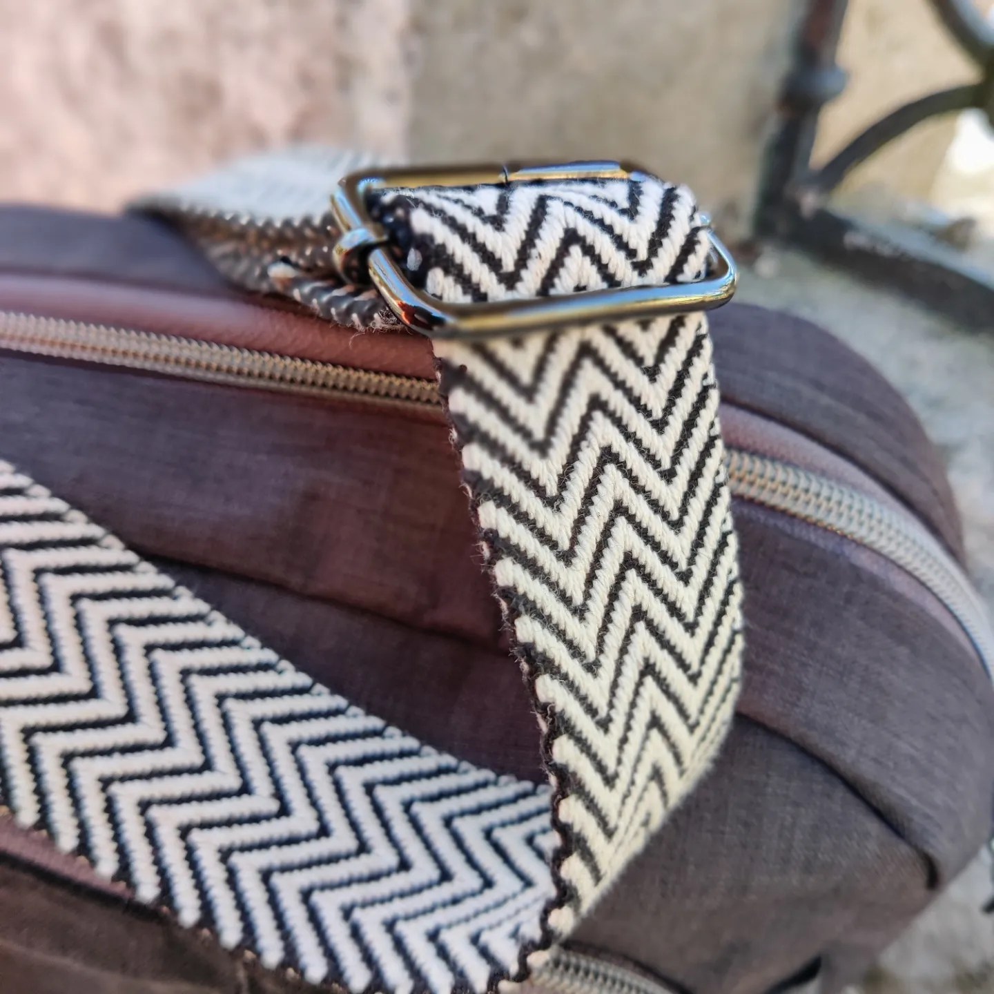 Taschenzubehör, Outdoorstoff Isah, der Zickzack Canvas uns das grün gemusterte Gurtband sind von Snaply, der Katzencanvas und das schwarz/weiße Gurtband vom lokalen Stoffhändler.