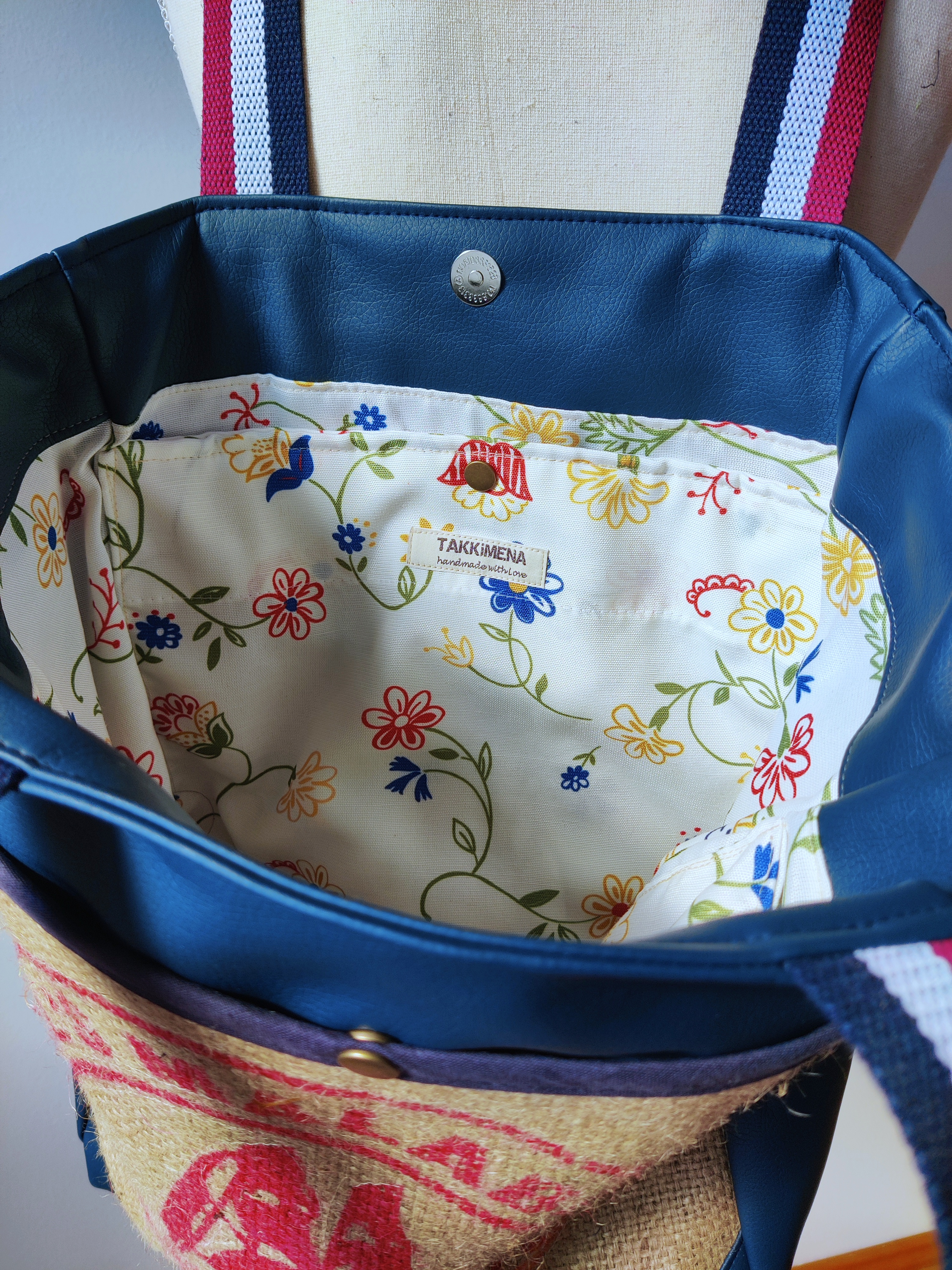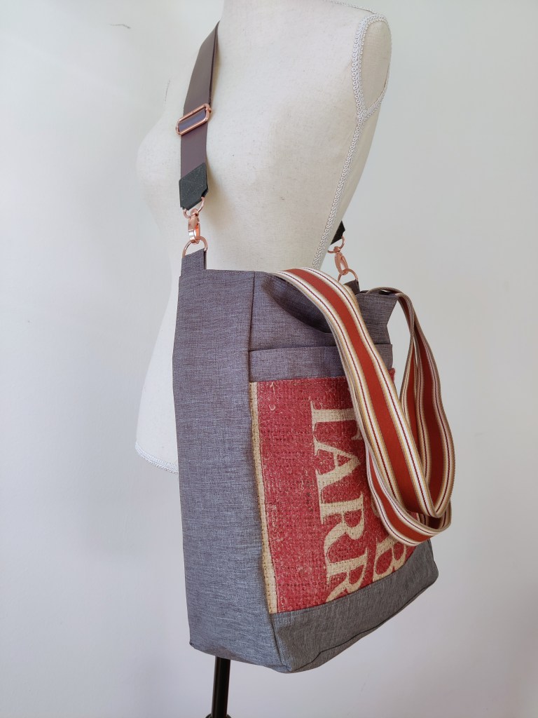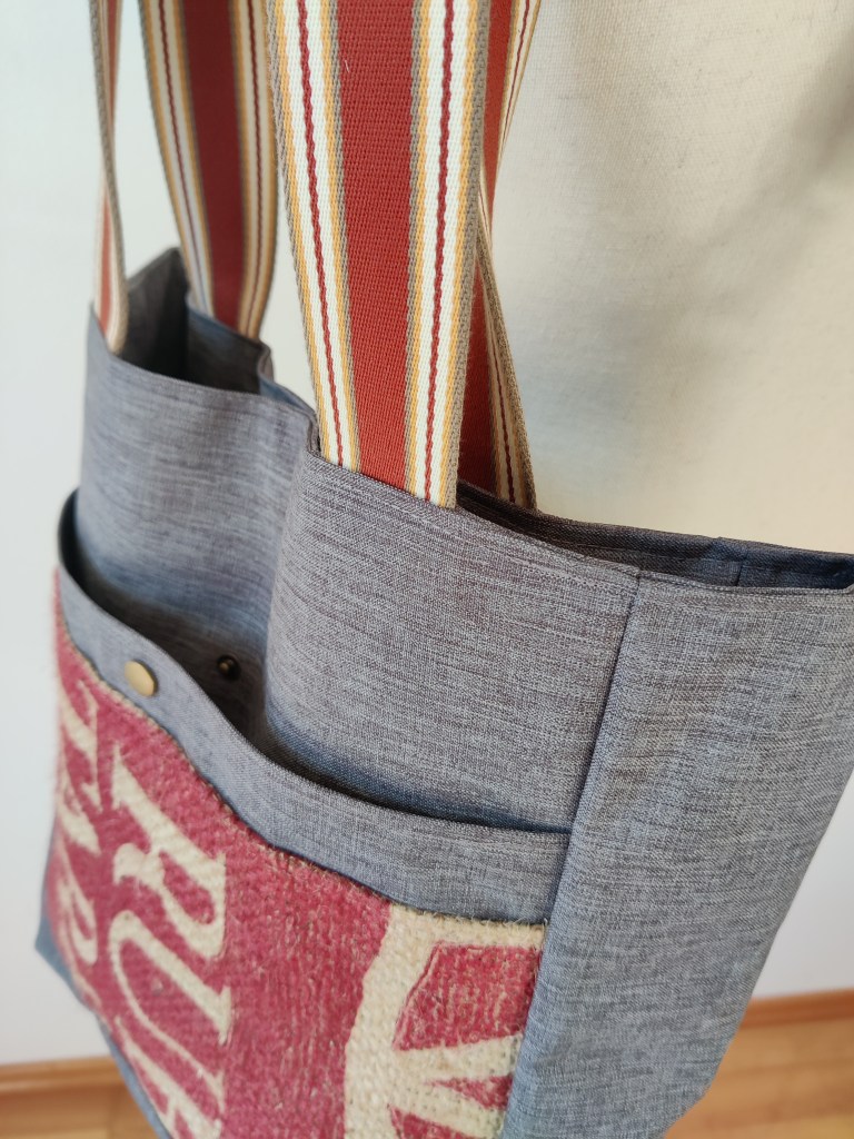 Warum Kaffeesäcke wegwerfen wenn daraus solche Schönheit entstehen können? Das Ergebnis ist alles Gefussel und Maschinenputzen wert!! Jede Tasche ist motivbedingt ein bisschen anders. Jede hat aber aussen und innen praktische Steck- und Zipperfächer, ein Schlüsselband, einen Magnetverschluss und einen zusätzlichen abnehmbaren Tragegurt. Diese beiden Schätzchen hier sind mit Kunstleder und Outdoorstoff kombiniert und haben die Maße 40 x 38 x 13 cm.