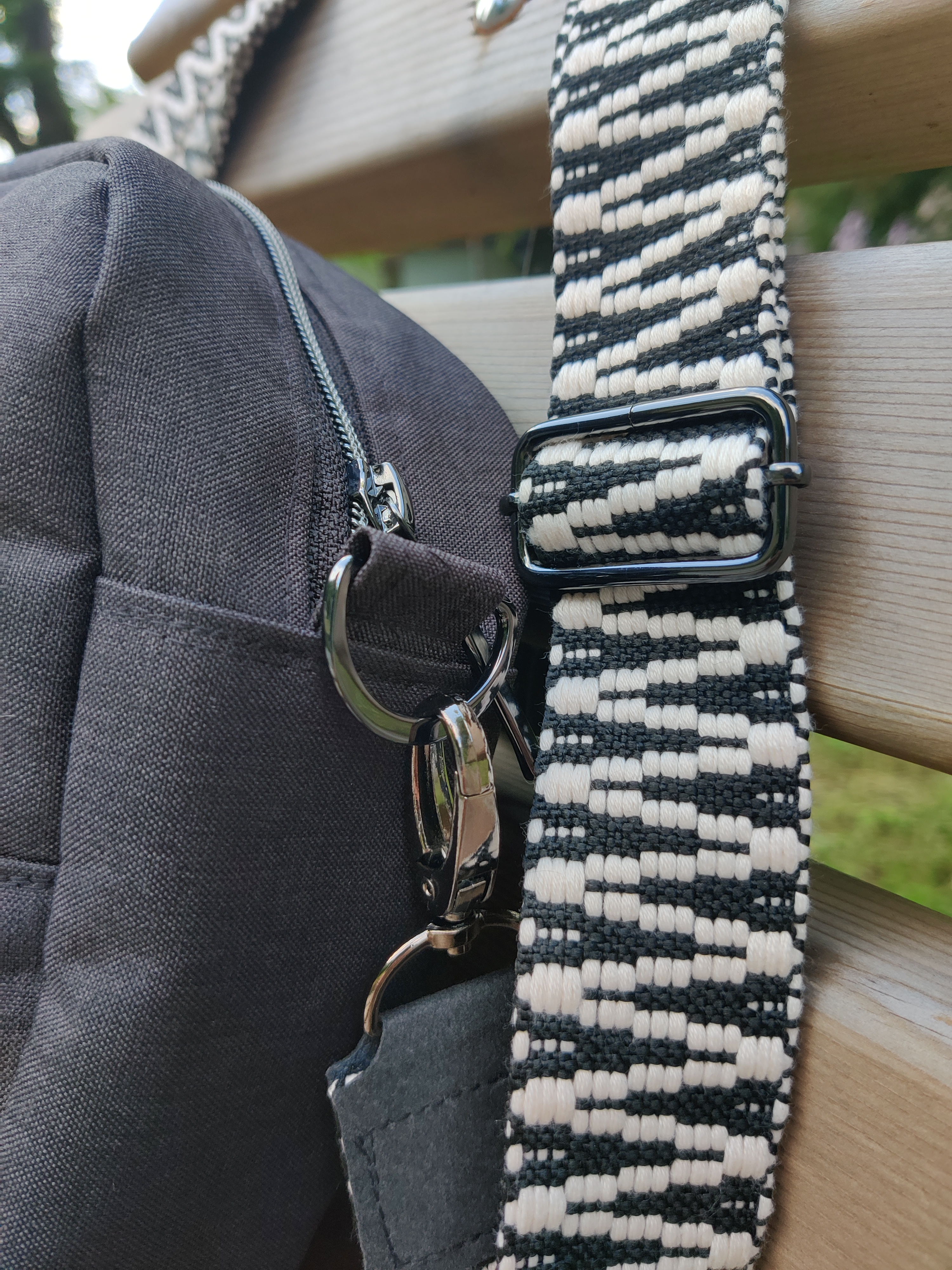 Heute wird mein kleines Schwarzes ausgeführt! Die Umhängetasche bugwelle nach dem Schnitt von farbenmix ist der perfekte Alltagsbegleiter und bietet überraschend viel Volumen! Hat sich zu einem meiner Lieblingsschnitte entwickelt. Diese kleine Schönheit aus schwarzem Outdoorstoff ist bewusst schlicht gehalten, sie soll schließlich zu jedem Outfit passen. Das coole Zickzack-Gurtband von snaply und der gemusterten Canvas passen ideal dazu. Ich bin happy, was meint ihr?