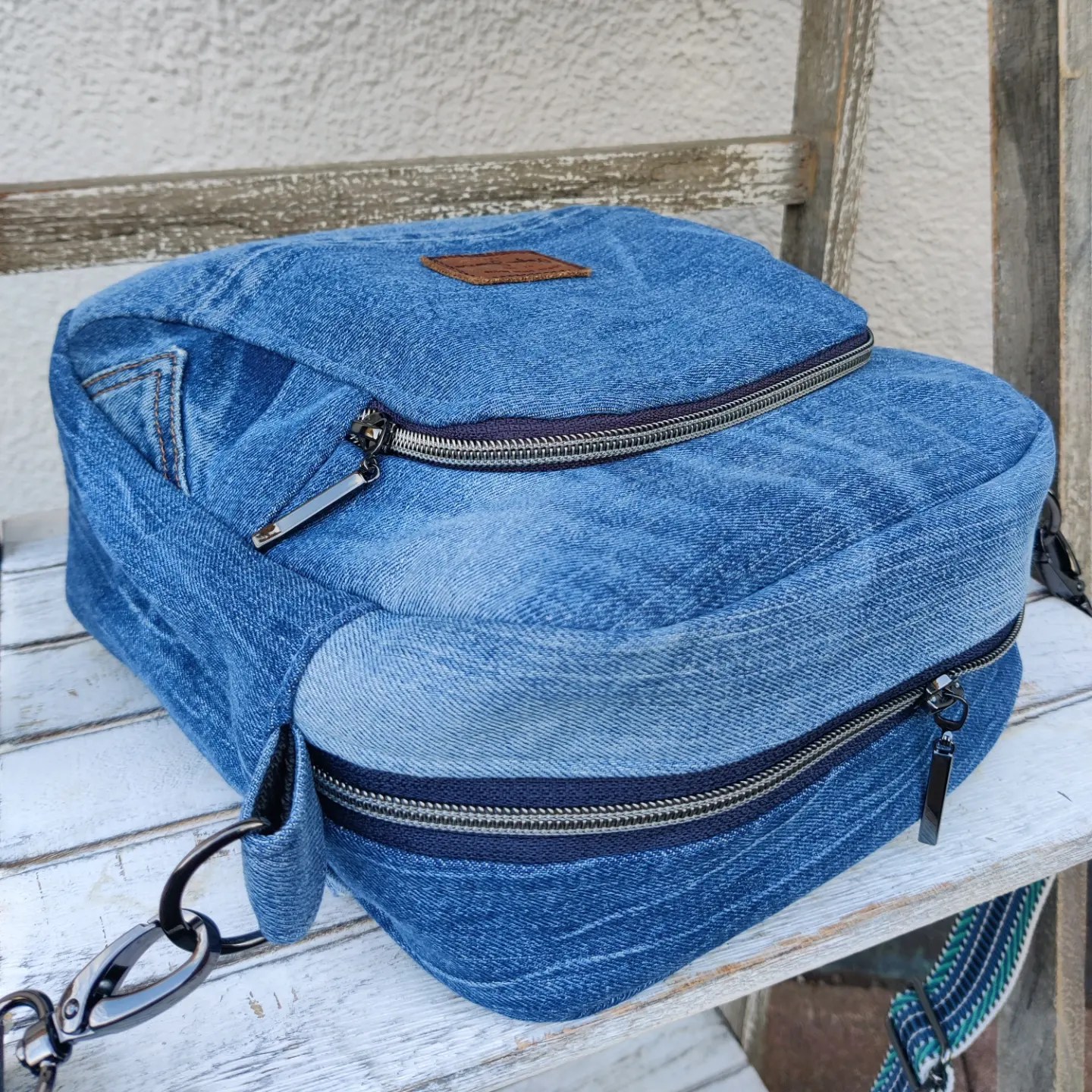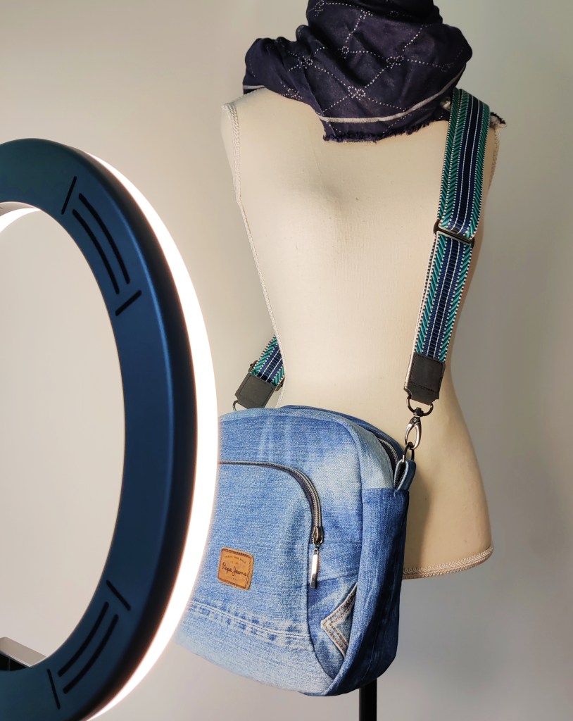 Hat eine Kollegin gerufen und mir gleich eine Jeans zum Verarbeiten gebracht. Aus 54 Einzelteilen ist dann diese kleine feine Crossbody Bag ‚bugwelle‘ genau nach ihren Vorstellungen entstanden – genähte Nachhaltigkeit 👖♻️ Metallzubehör und Zipper sind von snaply, das Gurtband ist von Giraffenland. Ich liebe diese Art Tasche und freu mich ganz besonderes, jemanden mit diesem Unikat glücklich gemacht zu haben!