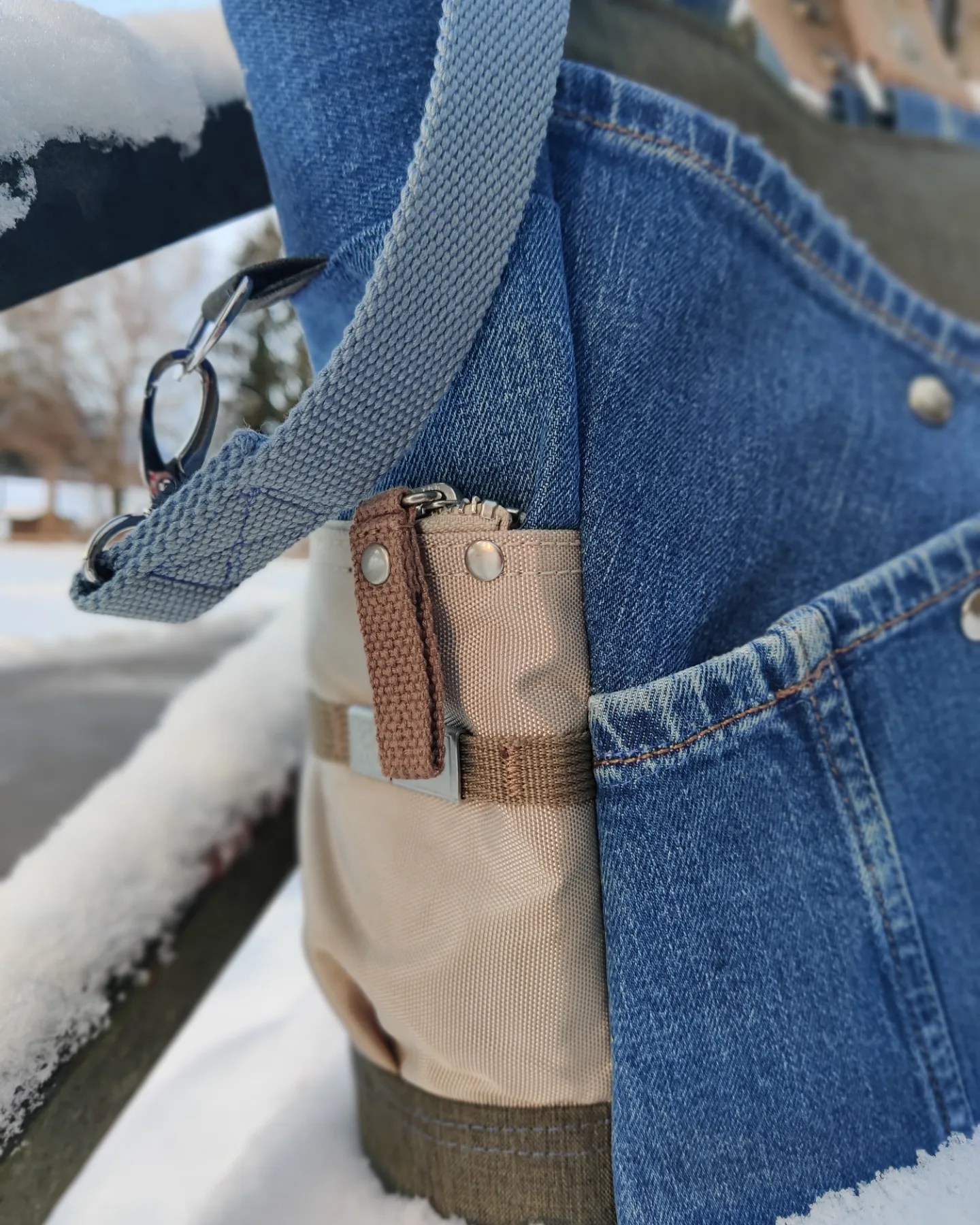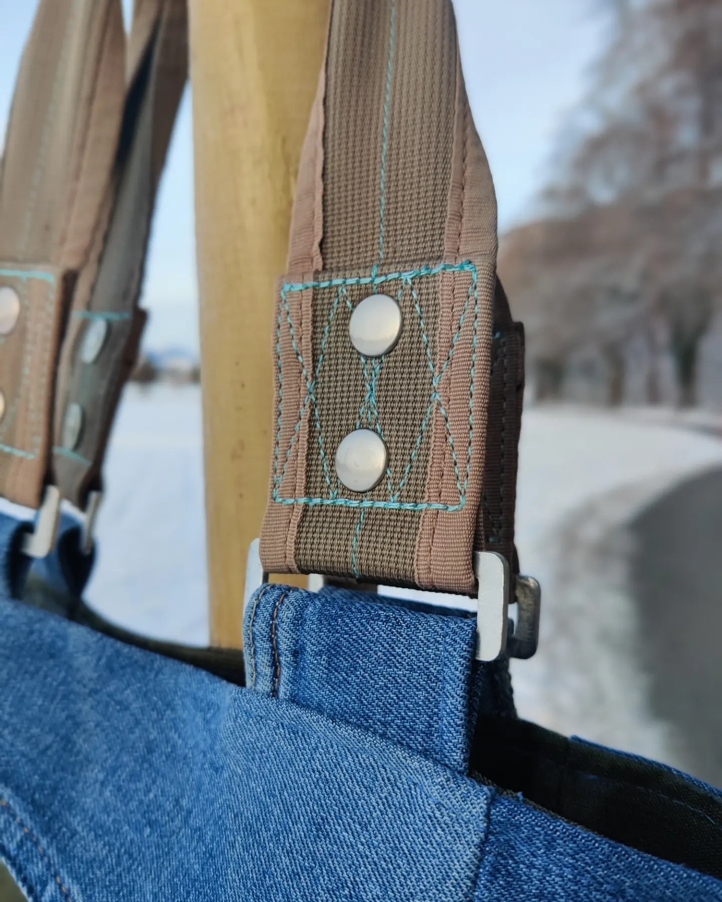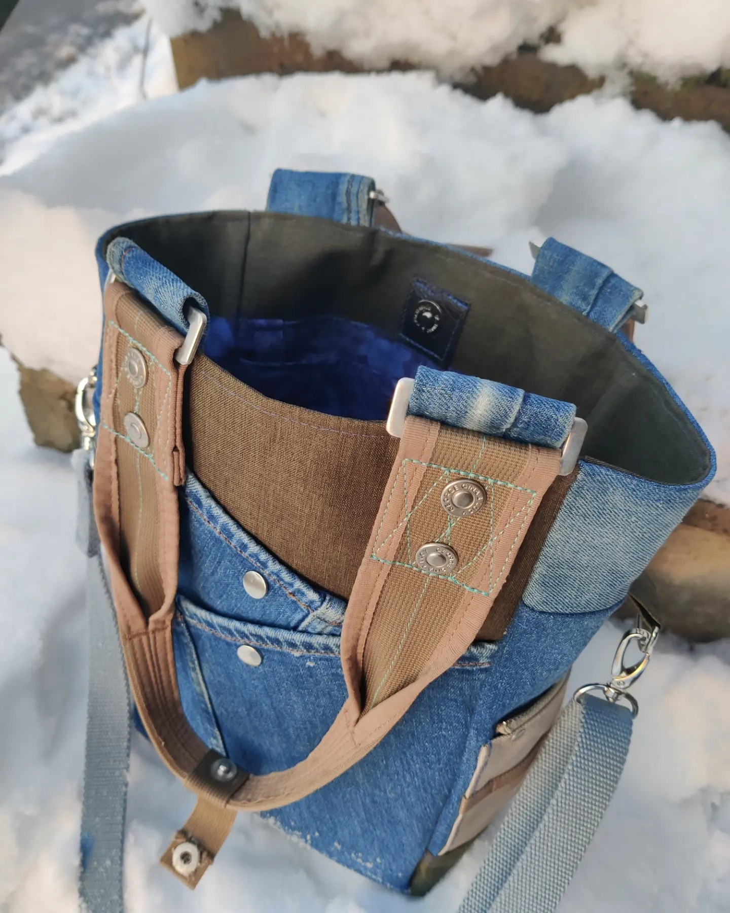 Vor kurzem hat mir eine Freundin zwei Handtaschen zum ‚Ausschlachten‘ gebracht. Die blaue ist noch in Arbeit aber die helle ist schon fertig. Einiges mußte weg, aber aus den noch guten Teilen (Zipper, Träger, Aufsatz-Taschen) ist in Kombination mit Jeans und Outdoorstoff eine wunderschöne neue Shoppertasche entstanden. Schnitt freestyle. Wie gefällt sie euch?