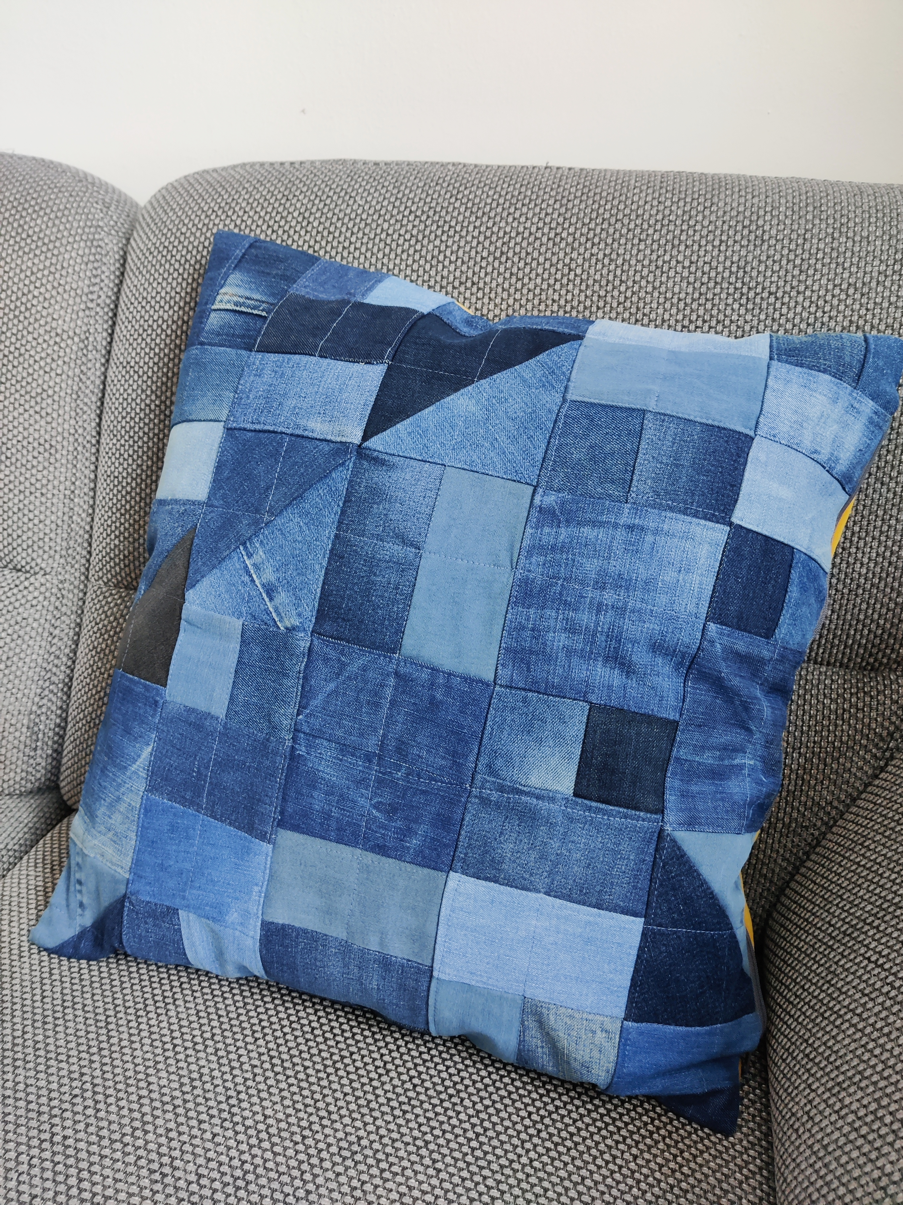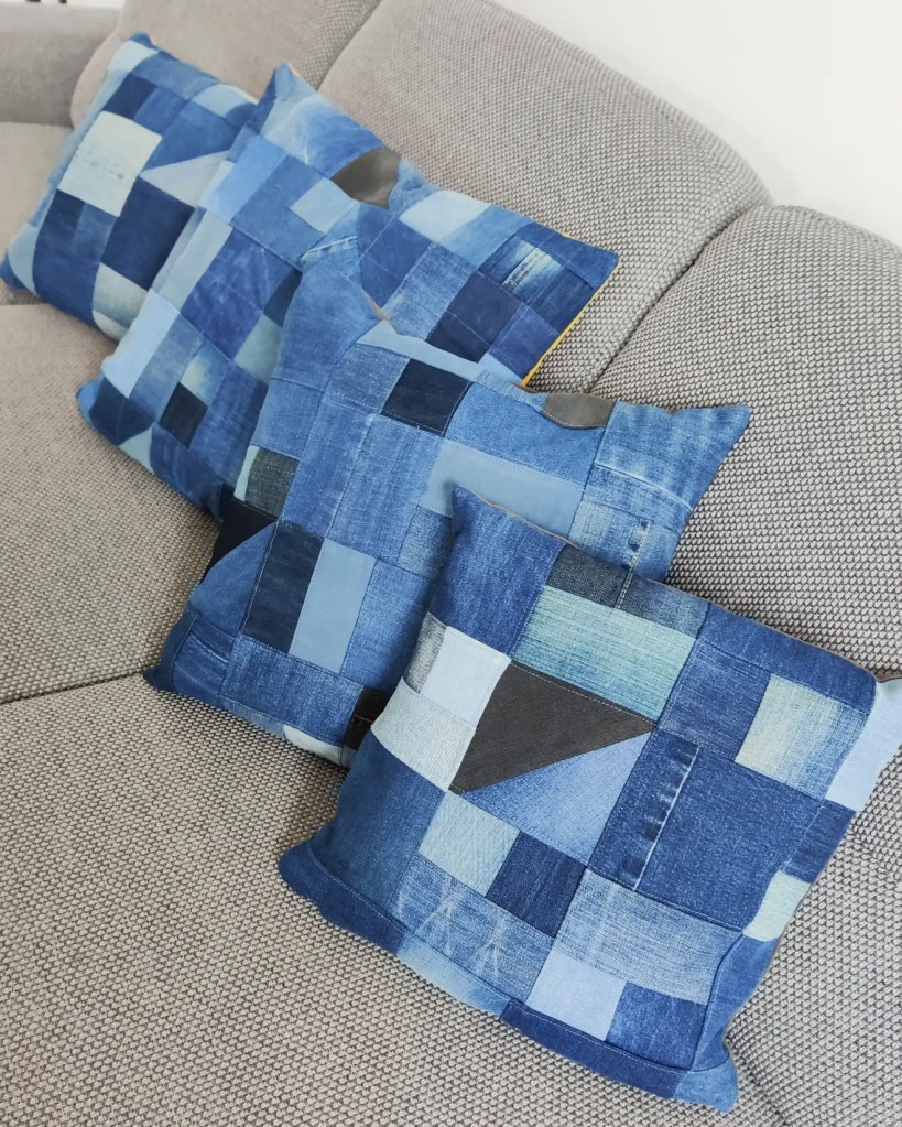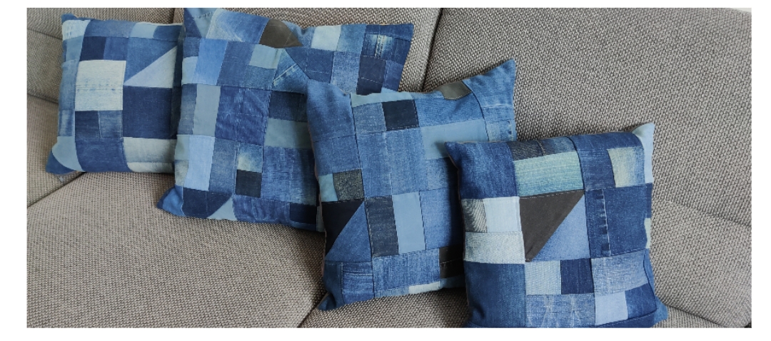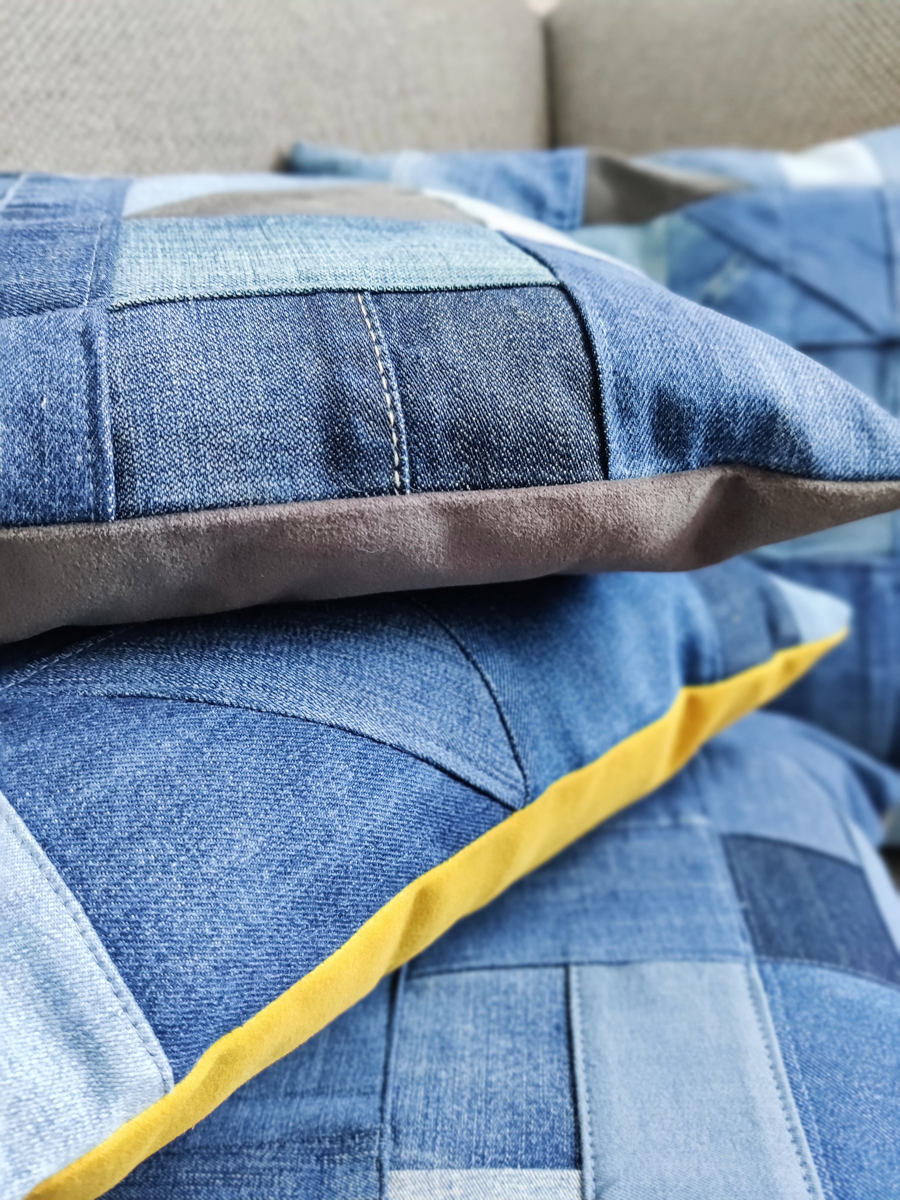 Und jetzt ran an die Couch 👉Aktion ‚Schöner wohnen‘ Teil 2! Diese Kissen waren aufgrund der kleineren Teile etwas aufwendiger zu nähen, aber es hat Spaß gemacht. Ich finde, es sieht mega aus !! Natürlich haben alle Kissen einen praktischen Reißverschluss. Die Rückseiten sind aus kuschelige Samtstoff. Jedesmal, wenn ich jetzt auf dem Sofa relaxe, seh ich Teile meiner Lieblingsjeans, das ist cool 👍👖♻️ und hurra, auch hier habe ich das OK der Family bekommen 😉
