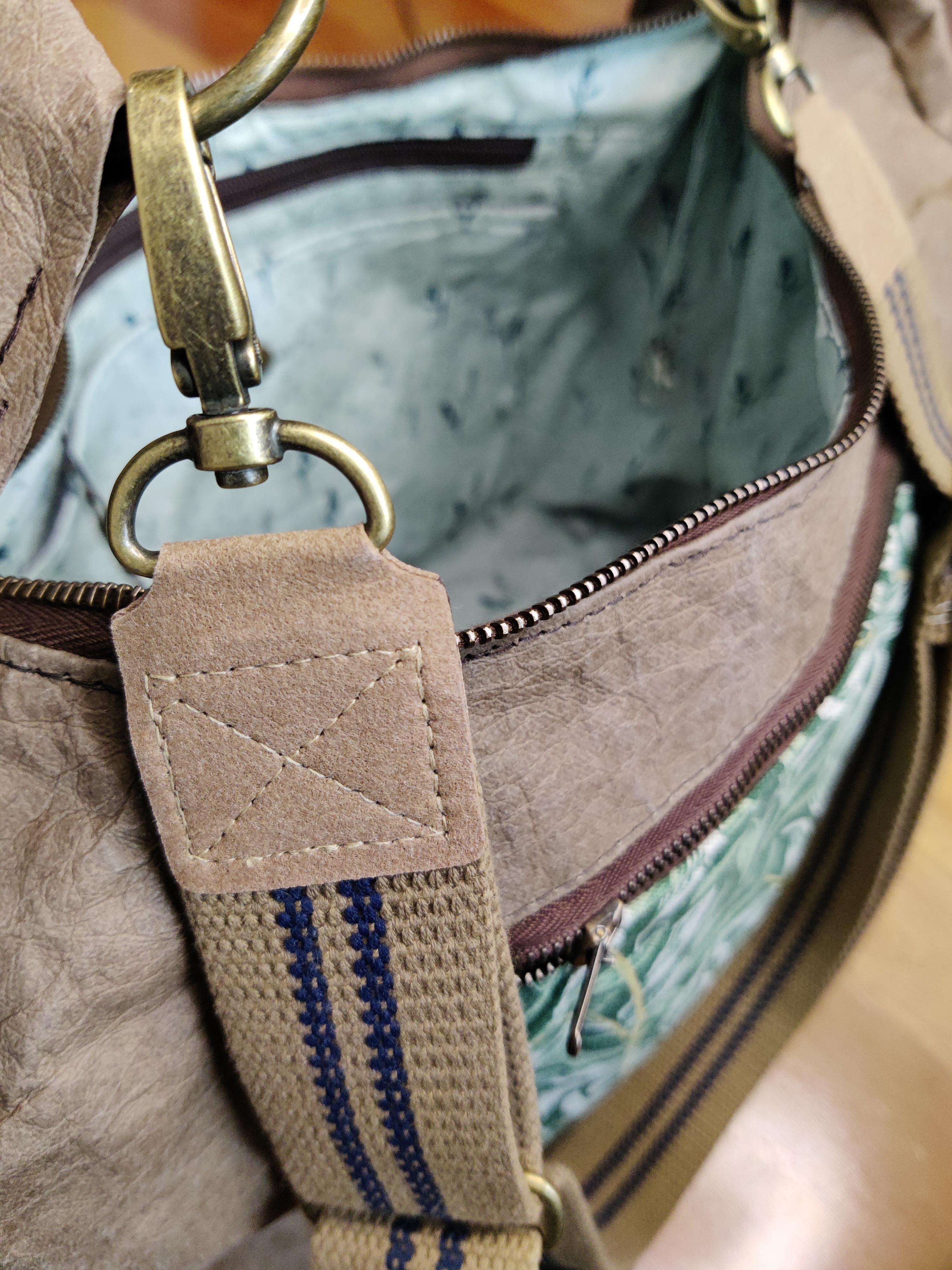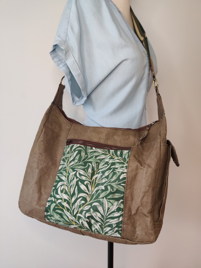 Darf ich vorstellen: Eine Kundenwunsch-Tasche komplett aus SnapPap plus (veganes Lederpapier). Laut Hersteller ist die Plus-Version weicher und leichter zu nähen 🤔. Naja ich habe keinen Vergleich, aber ‚leicht‘ war es nicht. Das Material verzeiht keine Fehler, braucht sehr große Stichlänge, muss definitiv vorher in die Waschmaschine und dann feucht verarbeitet werden – und ist dabei immer noch recht sperrig. Den Stand und die durchs Knicken entstehende Lederoptik finde ich gut. Bin gespannt wie sich das Material mit der Zeit verändert. Auf alle Fälle ist es robust und wasserabweisend. Die Taschen-Übergabe hat noch nicht stattgefunden, bin daher schon neugierig ob sie gefällt. Was meint ihr?