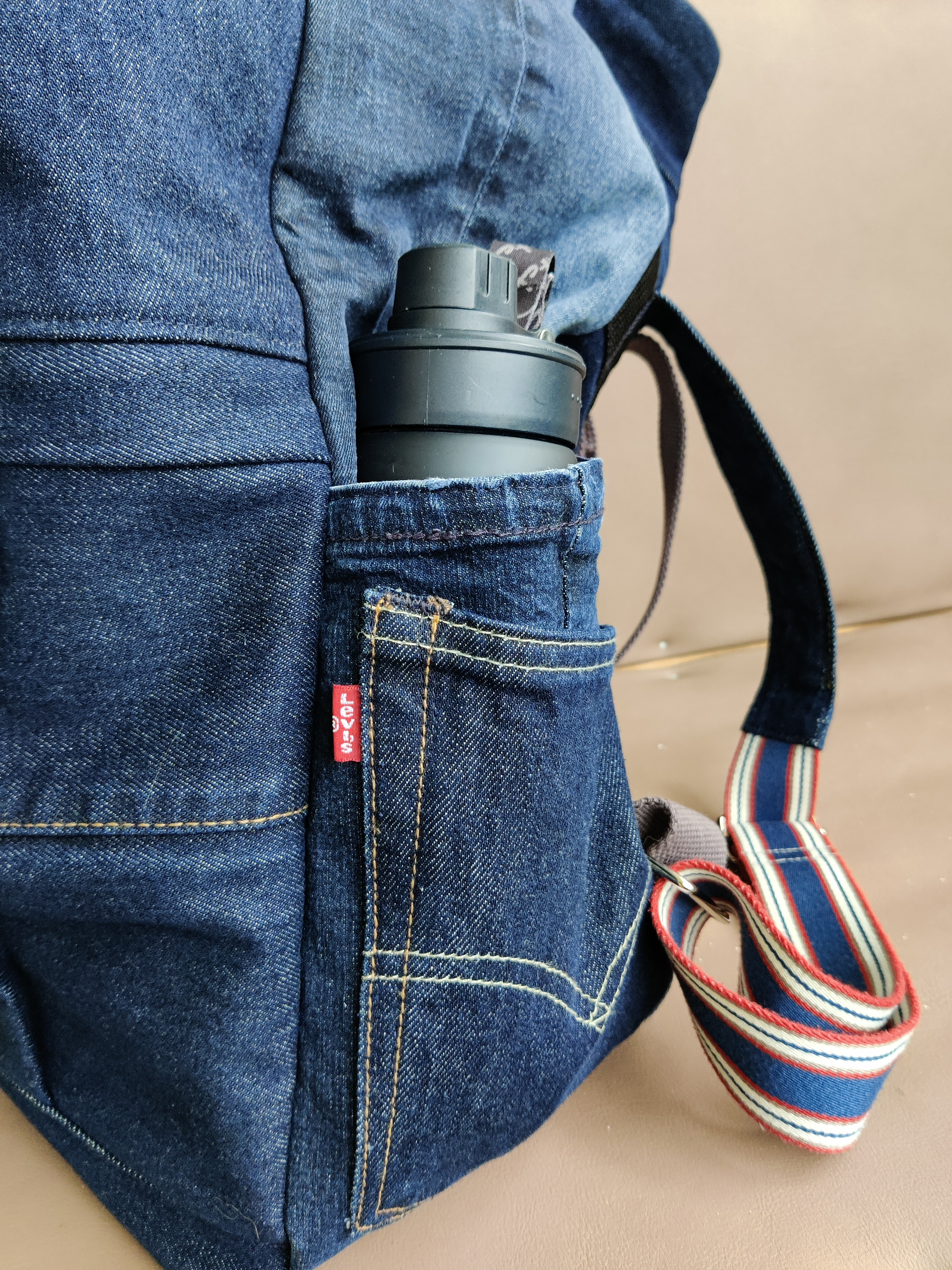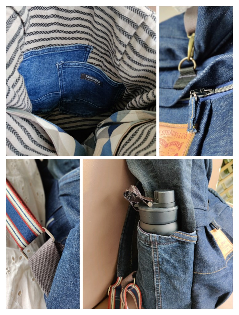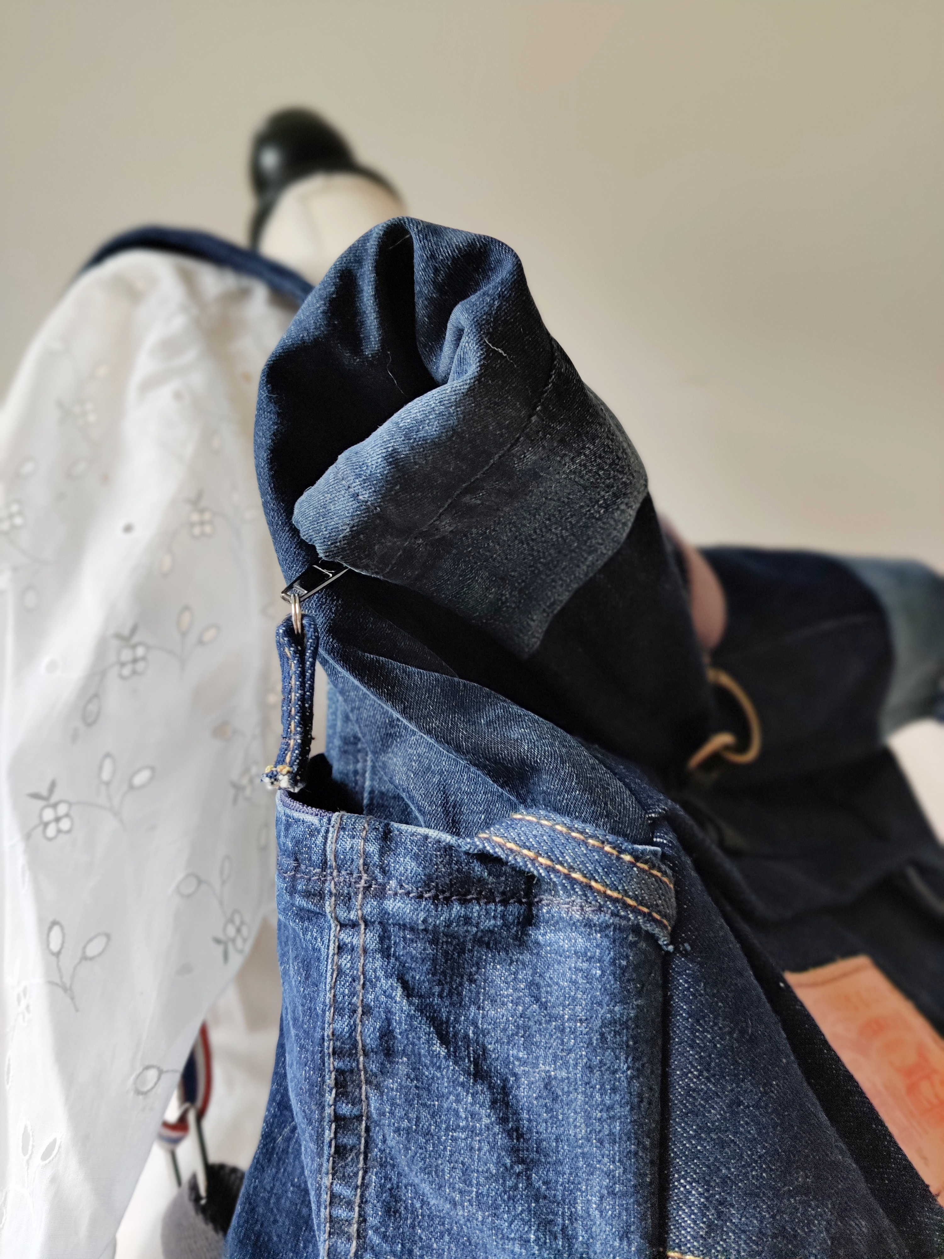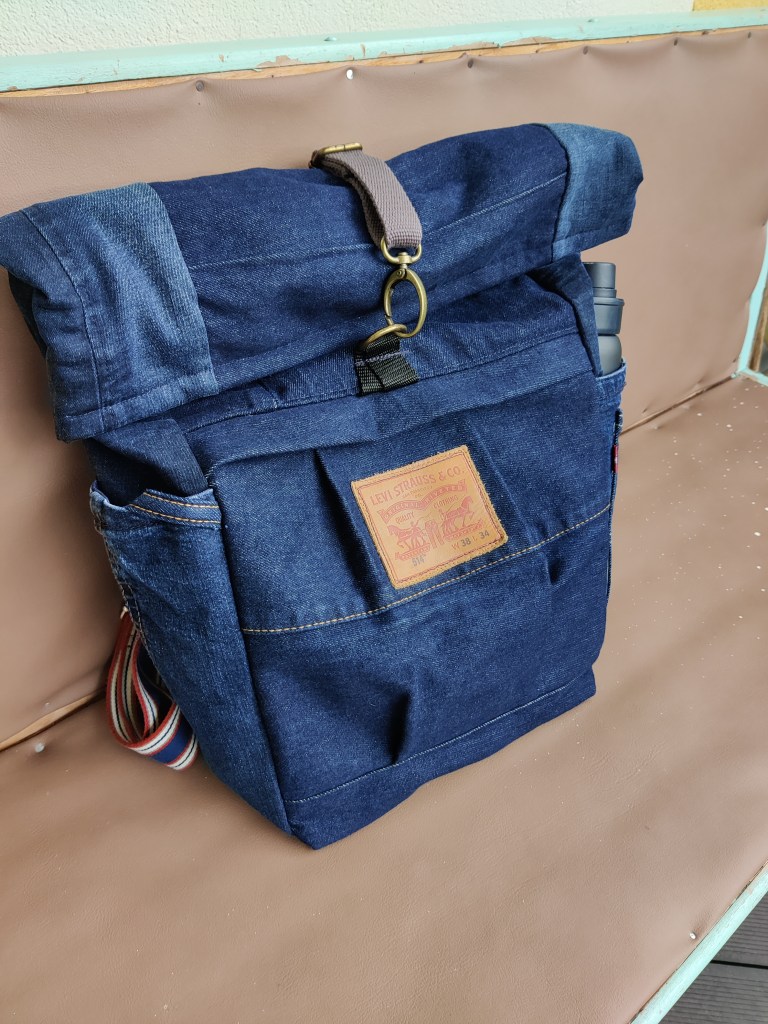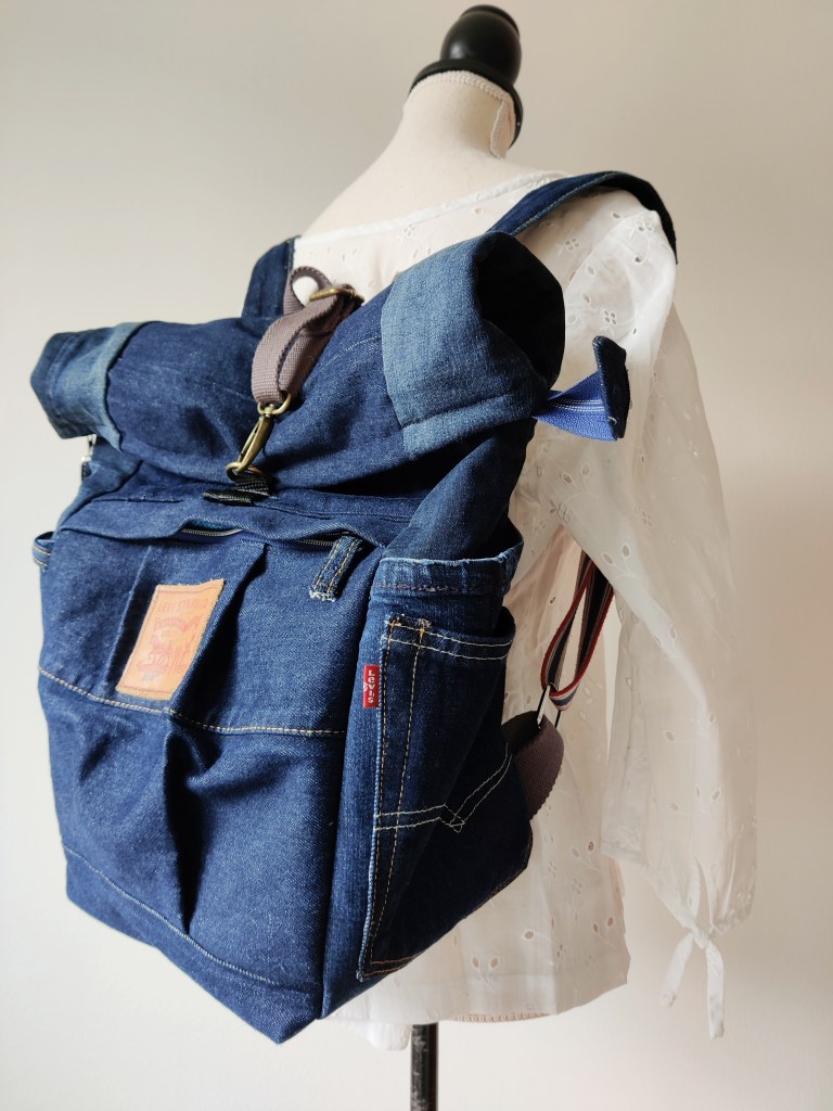 Genau rechtzeitig fertig geworden für den Kunst- und Handwerksmarkt am Wochenende ist dieser coole, geräumige und nachhaltig aus Jeans genähte Rolltop-Rucksack. Mit vielen praktischen Fächern außen und innen ist er ein idealer Begleiter für Alltag, Reisen, Sport, Shopping uvm. Der Boden ist aus robustem Outdoorstoff und abwischbar.