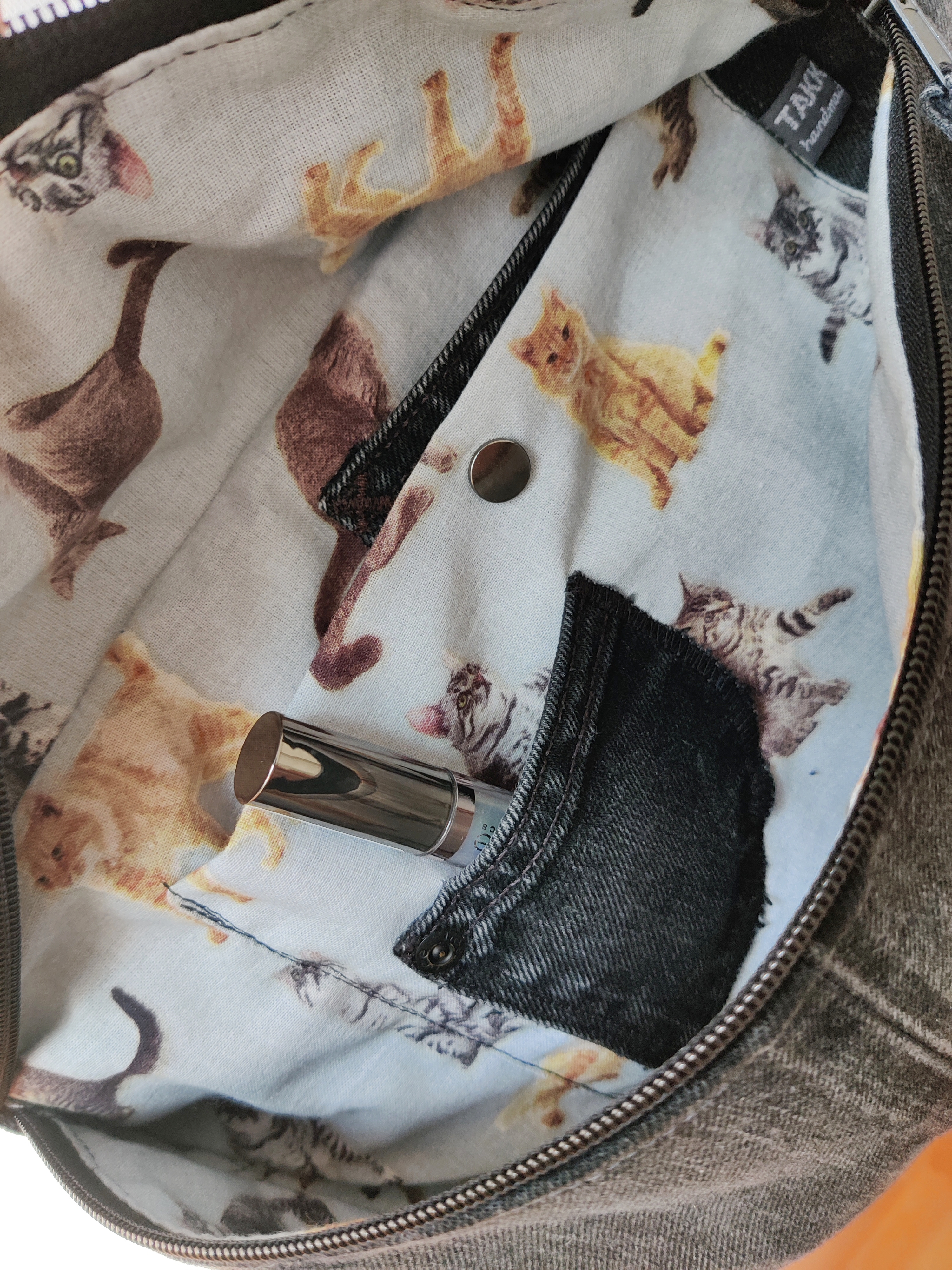 Hallo Montag, Hallo neue Tasche – klingt nach einem tollen Wochenstart! Habe mir selbst eine kleine(re) dunkle Crossbody Bag genäht 👖💙 und erstmalig auch das ‚Gurtband‘ aus Jeans gemacht (war urspgl. der Hosenbund). Sieht cool aus, oder? Und wenn ich schon eine Tasche für mich selbst nähe, dann natürlich mit Katzen 😉 Die graue sieht ein bisschen aus wie meine Süße (Stoff hat ihr auch gefallen).