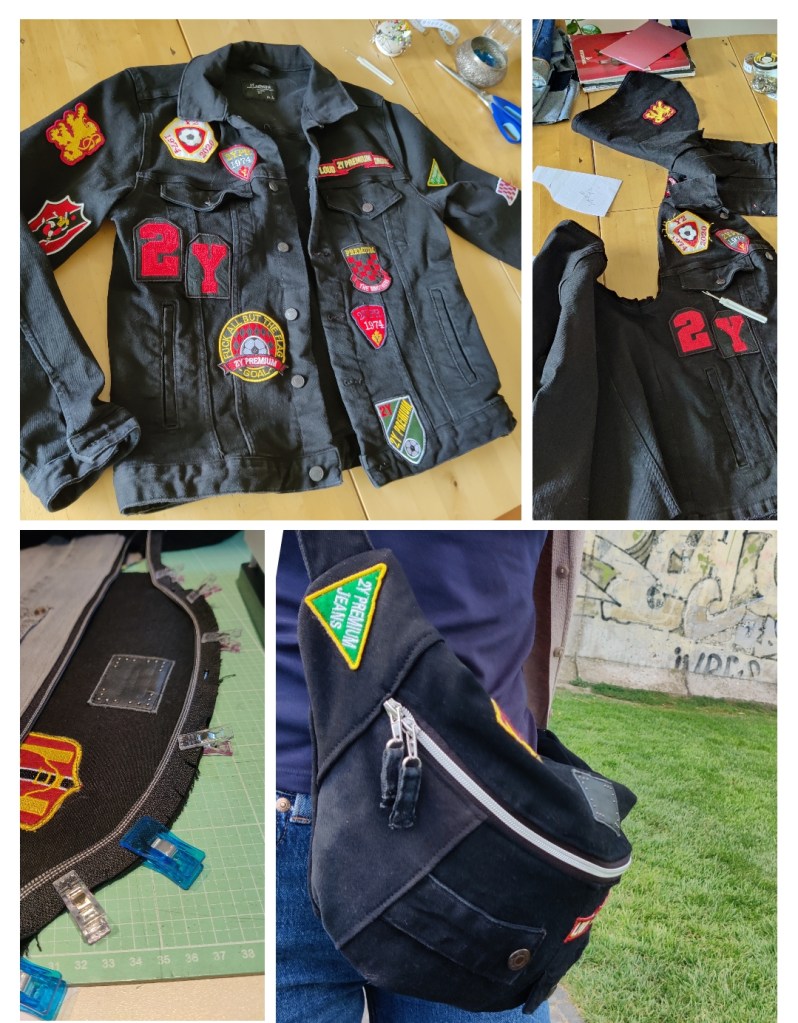 Aus einer mit coolen Applikation bestückten schwarzen Jeansjacke habe ich mir diese entzückende neue Crossbody Bag genäht – und direkt in den Kurzurlaub nach Berlin mitgenommen 😍 … Die Tasche hat die perfekte Größe für einen Städtetripp, sogar ein Knirps und/oder eine kleine Trinkflasche passen rein. Hände frei und alles Wichtige immer nah am Körper 👍