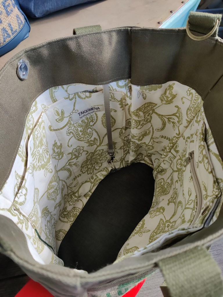 Gewünscht waren aussen und innen viele Fächer (damit frau auch garantiert nicht mehr weiß, wo sie was hingetan hat 🤭). Und die Tasche sollte zur Geldbörse passen. Haben wir alles ganz gut hingekriegt oder? Vorlage war meine Wonderbag, wobei ich hier die Seitenteile etwas breiter (Kaffeebechergröße) und an Front- und Rückenteil die Ecken unten leicht abgeschrägt habe. Alles genau nach Wunsch, das liebe ich so am Nähen. Bin super happy mit dem Ergebnis und freu mich darauf, hoffentlich bald wieder eine nähen zu dürfen. Die dann bestimmt wieder etwas anders, weil individuell, ausfallen wird.