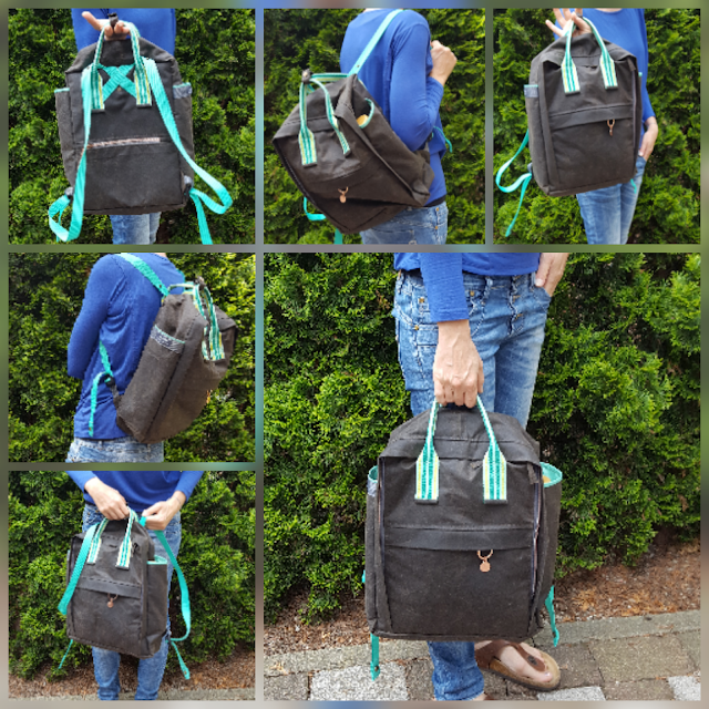 Stoffe und alle anderen Zubehörteile wie Zipper, Gurtband, Karabiner, Schieber sind von snaply.