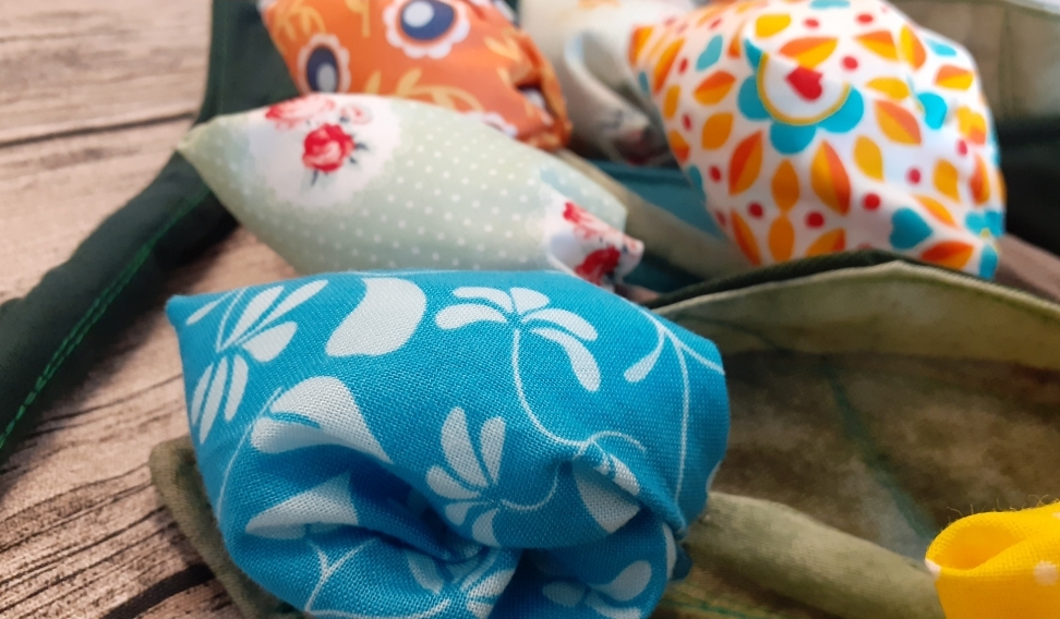 Mit Stoff kann ich deutlich besser umgehen als mit Pflanzen 😉 Und diese Blumen bleiben auch garantiert länger frisch! Bis auf die Blätter ist alles per Hand genäht, hat richtig Spaß gemacht mal etwas ganz anderes nähen. Ich hoffe so sehr, dass meine kleinen Sträuße den Beschenkten gefallen. Für die Blumenstiele hab ich im Wald nach kleinen„Der etwas andere grüne Daumen“ weiterlesen