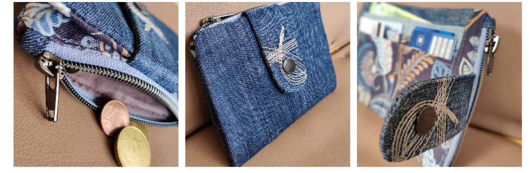 Kleiner feiner Spezialauftrag: Jeans-Geldbörse mit Münzfach und Fächern für Karten und Scheine. Den Schnitt hab ich selbst gemacht. Bin gespannt wie sich meine Kreation im Alltag bewährt … Was meint ihr? Soll ich mehr davon nähen? zurück nach oben