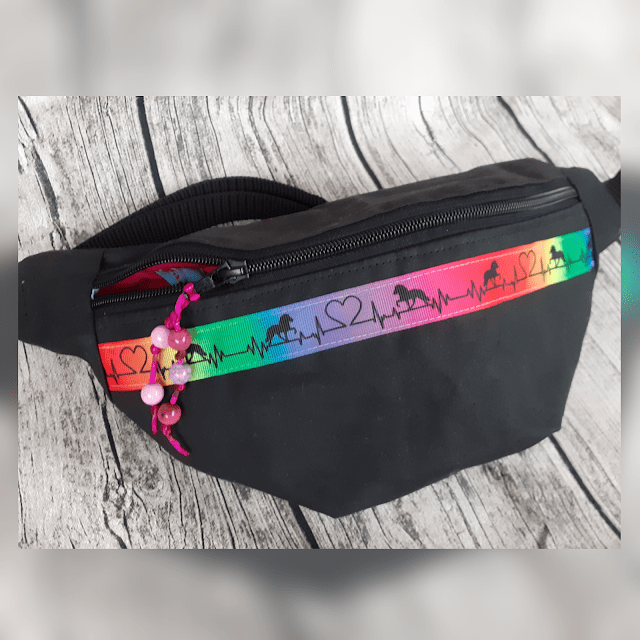 Ist ab sofort dieses praktische und thematisch passende Bauchtascherl für eine liebe Freundin und stolze Besitzerin zweier wunderhübscher Islandpferde. Genäht aus schwarzem Oilskin und Tölter-Webbändern. Das Futter ist in ihrer Lieblingsfarbe Pink gehalten. Innen gibt es ein Steckfach, ein Schlüsselband und auf der Rückseite außen auch noch ein extra Reißverschlussfach mit Rainbow-Zipper. Ich freue mich„Beim Ausritt immer dabei ..“ weiterlesen
